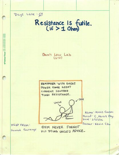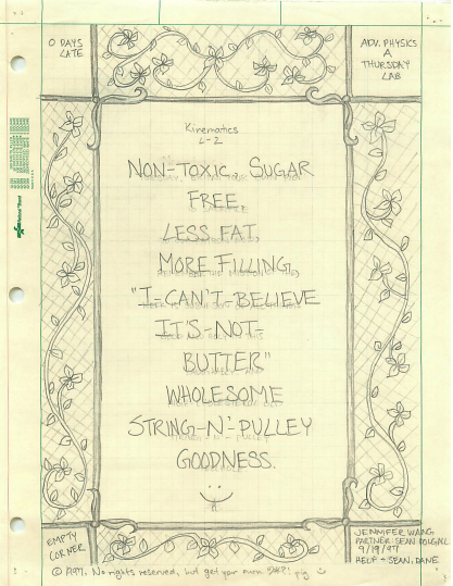 Decorating your lab cover is optional. You get nothing for doing it aside from the amusement of creating something your friends will chuckle at (or WOW at) when they see it up on the bulletin board outside Rm 109. And you don't even have to be a good artist. A stick figure and a clever thought is all you really need. In any case, what follows are examples of lab covers that were done by people with WAY too much time on their hands, who got into the swing and spirit of the things, and who have over the years generated some interesting and artful fun.